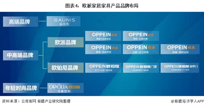 欧派:欧派品牌拥有橱柜、衣柜(全屋定制)、卫浴、软装配饰、电器等产品,产品定位中高端。