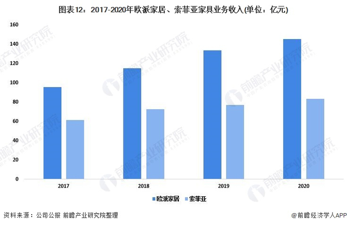 3、欧派家居VS索菲亚-家具业务业绩对比:欧派家居业务规模更大