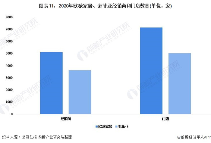 5)欧派家居VS索菲亚-家具业务渠道对比:欧派家居经销商数量更多