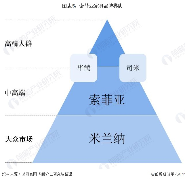 而索菲亚已经建立起覆盖全市场的完善品牌矩阵,分别是:以高精人群为目标的“司米定制家居”和“华鹤定制家居”,以中高端市场为目标的“索菲亚-柜类定制专家”,以大众市场为目标的“米兰纳定制家居”,四大品牌互相呼应,覆盖衣橱门全品类,同时辅以墙板定制、家具家品风格搭配,全面服务线上线下零售、整装、工程等全渠道客户,品牌覆盖中高低端全市场。