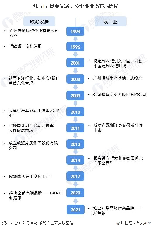 1、欧派家居VS索菲亚:家具业务布局历程对比情况