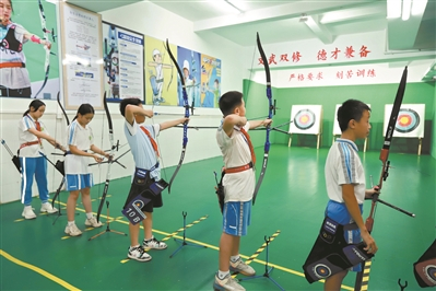 训练中的袁崇焕小学射箭队。