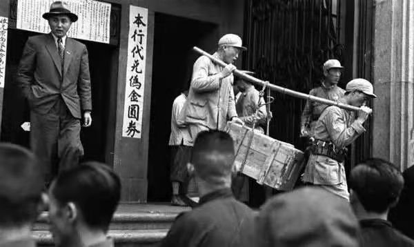 人民解放军将人民币押运至银行,上海各大银行开设兑换点