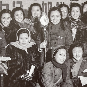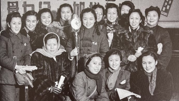 题图为1950年1月24日上海文艺界明星演出广播剧倡募国家折实公债,解放日报资料照片