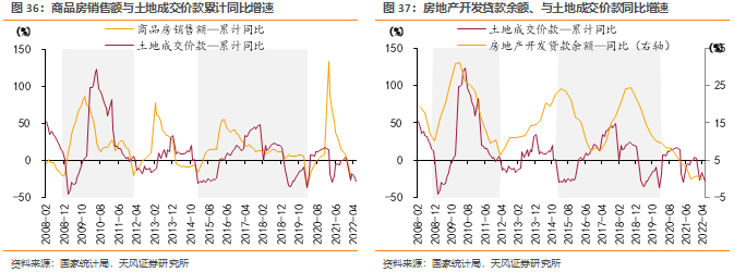 央行2022年一季度金融统计数据发布会中提到,我国新房个人贷款发放额和新建商品住宅销售额的比值长期在(38%,42%)区间内波动。我们根据该比值、新房贷款发放额测算出新建商品住宅的销售规模。