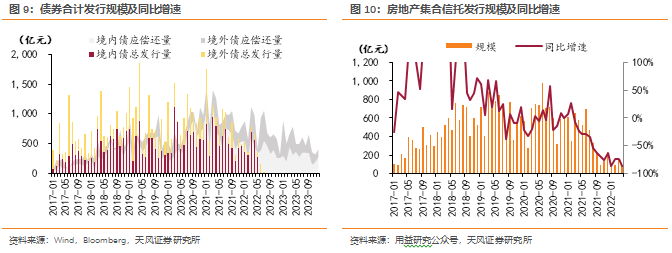 2021年下半年以来受爆雷事件冲击,房地产企业信用受损严重,融资规模持续下滑。