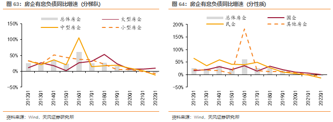 从房企负债端来看,一季度我们统计的上市房企有息负债规模同比-4.7%,近十年首现收窄,折射出行业融资收紧、持续缩表的现状。大、中、小型房企分别同比+10.4%、-11.9%、-6.9%,国企、民企则分别同比+1.2%、-13.2%,头部房企、国央企在融资优势明显。我们预计下半年融资政策宽松仍有望延续,国央企及优质民企的融资优势将继续拉大,行业分化加速。