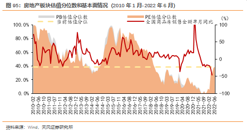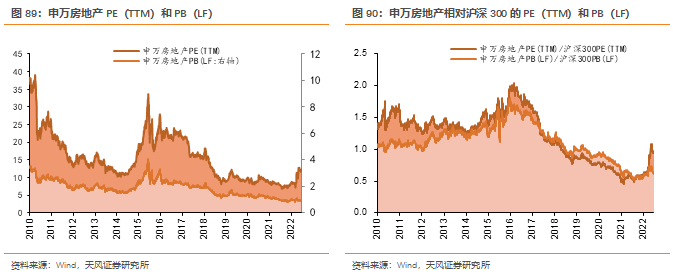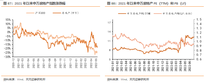 截止7月1日,最新申万地产PE(TTM)、PB(LF)分别为12.7X和1.0X,自2010年以来的估值分位数分别为41.2%和6.5%,相对沪深300指数的PE、PB估值分位数分别为32.4%和8.7%。