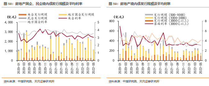 从政策端来看,22年初年中央提出支持房地产企业合理融资需求、鼓励优质房企兼并收购出险房企项目,大型国央企率先获得信贷支持。5月,碧桂园、龙湖等房企被选为示范房企获准发行债券并设立信用保护工具,民营企业融资迎来边际改善。
