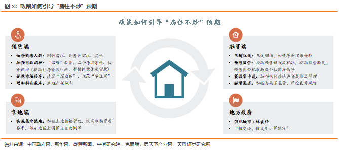 本轮地产金融供给侧改革的初衷在于遏制泡沫化、金融化势头,引导行业平稳健康发展。但在执行过程中,监管机构、金融机构、房企、购房者、上下游参与者之间旧平衡被快速打破,新机制尚未建立之前,预期快速反转导致行业基本面、信用面出现负反馈式调整。伴随供需政策利好的逐渐释放,市场预期迎来自然修复,短期弱复苏趋势基本确立,复苏斜率和持续性仍有待观察。