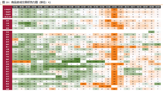 2) 行业销售下行超预期,带动行业开发投资、新开工、拿地、施工等指标快速下行;