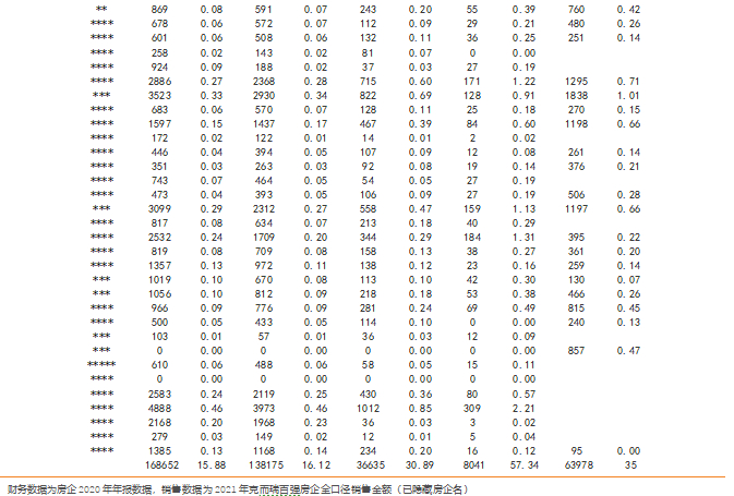 我们分别选取2021年以来15家违约房企及67家已出现境外评级下调的民企,通过梳理其销售及财务数据并计算各指标占行业总规模的比重,来衡量民企潜在的信用风险可能给行业带来的影响和冲击,分析结果如下: