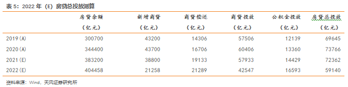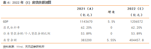 考虑到2021年末我国居民杠杆率已达到62.2% (62.6%为国家资产负债表研究中心口径,上文的61.6%为国际清算银行口径),我们假设居民杠杆率稳定不变,相应的2022年房贷余额为40.45万亿元。