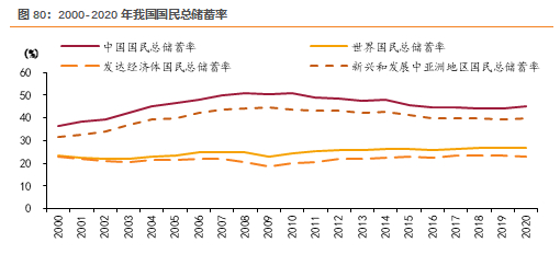 1)存款项:我国储蓄率依然处于高位。近二十年来,我国的国民总储蓄率始终高出世界、发达国家、新兴和发展中亚洲地区的国民总储蓄率。2020年,我国的国民总储蓄率达到45.07%,远高于世界和发达国家国民总储蓄率(27.01%、23.05%),高于新兴和发展中亚洲地区的国民总储蓄率(40.08%)。若国民总储蓄率每降低1pct,按照2021年GDP计算,对应释放1.14万亿资金。