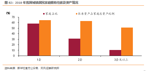 央行《2019年中国城镇居民家庭资产负债情况调查》显示,我国城镇居民家庭的住房拥有率为96%,一套房家庭、二套房家庭、三套及以上家庭占比分别为58.4%、31%、10.5%,如上三种家庭中总资产中住房资产占比分别为64.3%、62.7%、51%,这主要由于多房产家庭倾向于多元资产配置。在目前住房自有率较高的基础上,居民对住房的置换需求较大,存量房的可交易空间充足。