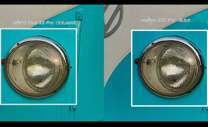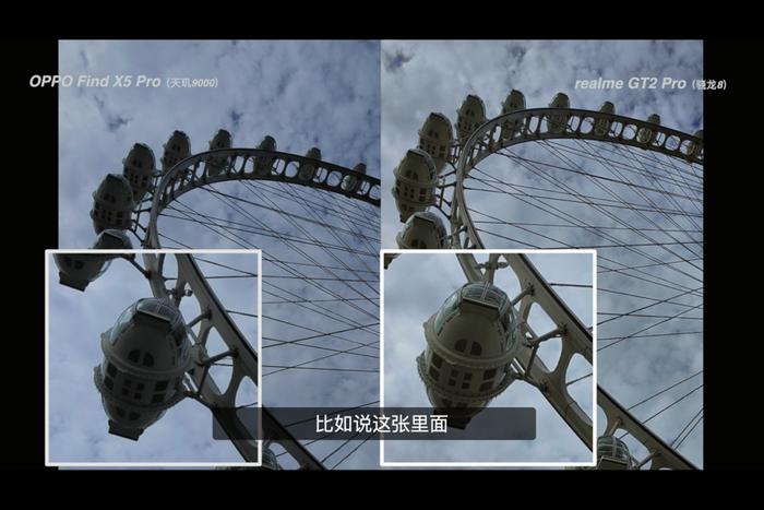 放大观看画面中间的细节,GT2 Pro 和 Find X5 Pro (天玑)其实都有增加一点锐化的效果,只是天玑版的 Find X5 Pro 锐化下手会更重一些。