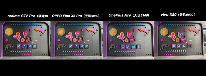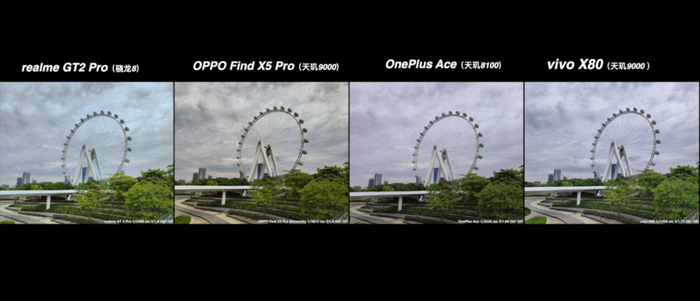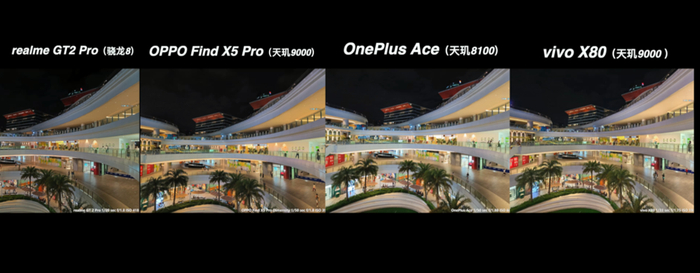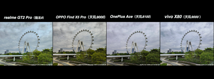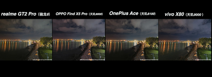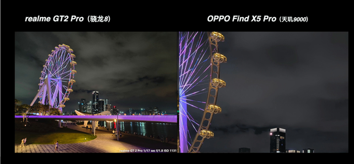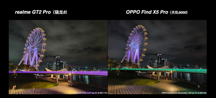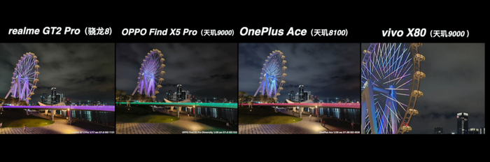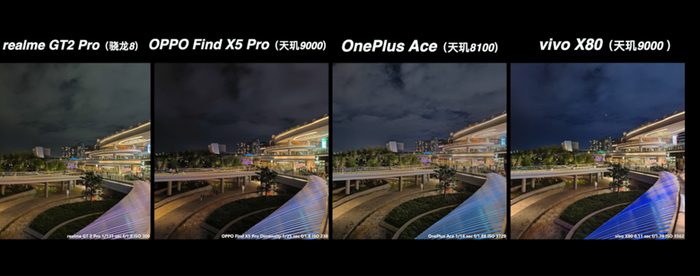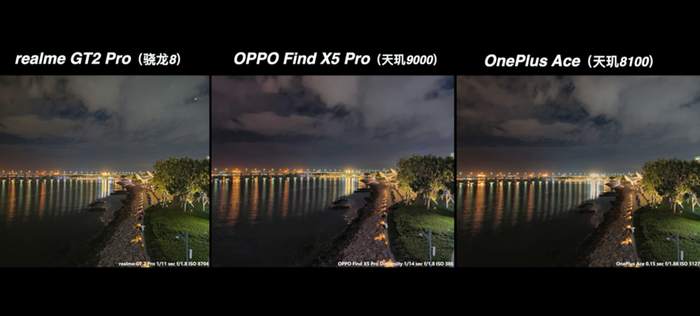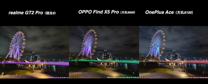 从上面这多的对比来说,高通骁龙 8 的真我 GT2 Pro 在大部分场景都有比较好的表现,特别是真我本身的影像调校更偏好于稍高的曝光亮度、高宽容度和浓郁的发色,还是很符合大众的审美取向。而天玑阵型的表现也并没有落下太多,在基础画质的表现上还是维持了 IMX766 的水准,顶多只是各家在成像调校上各有取舍。哪怕是同宗同源的绿厂兄弟,在实际的成像风格上面也是各有特色的。在这次的对比当中,反而是一加 Ace 的夜景比较有惊喜。Find X5 Pro 天玑版的表现比较中规中矩,还有可以优化的空间。至于 X80 它是新规格的 IMX866 传感器,也有 V1+ 芯片的加持,它理所当然有更好的发挥。