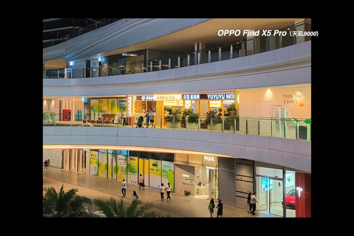 Find X5 Pro 则依旧是利用暴力夜景算法,在保持极低的 ISO 同时保持了画面的亮度,但相比 GT2 Pro 来说,曝光还欠缺了一点。
