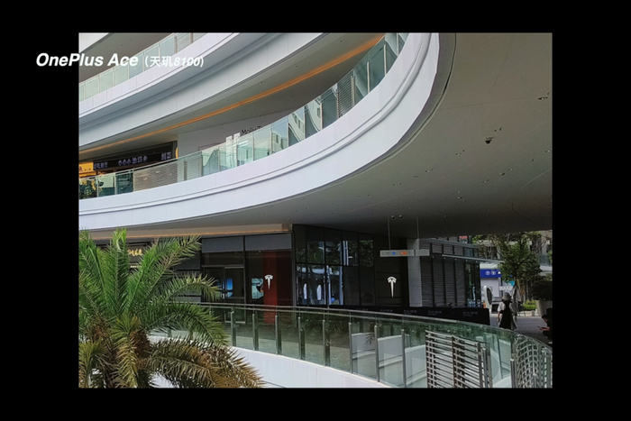 相对来说,一加的表现就更像是糅合了真我和 OPPO 的成像处理。在 HDR 模式下,一加 Ace 获得了更加明亮的画面,同时阴影部分的细节表现达到很大程度的提升。不过画面会产生比较明显的彩噪和色斑问题,另外高亮处的紫边现象也是最明显的。