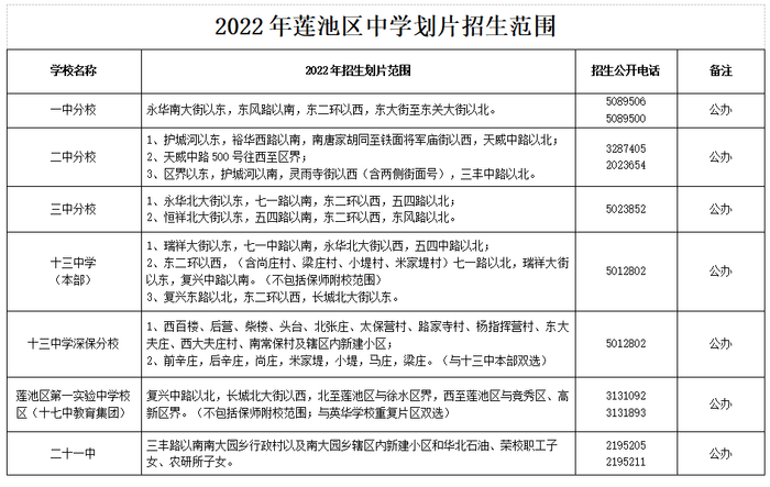 7月7日,2022年保定市主城区义务教育学校招生安排新闻发布会召开。会议公布了莲池区、竞秀区、高新区各中小学招生划片范围,详情如下: