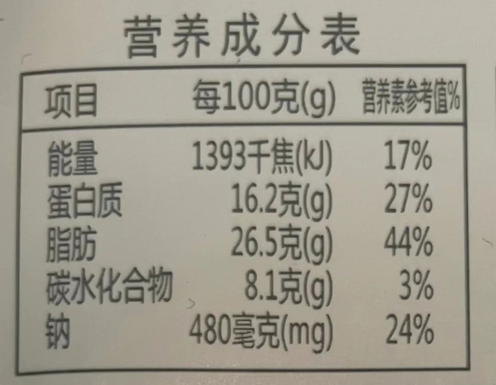 (食品成分表上可能写的是NRV,也可能是营养素参考值。来源:自己拍的)