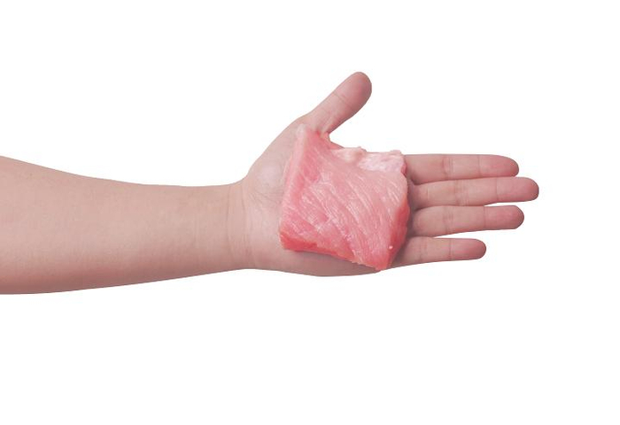 (和手掌一样大的一块瘦肉大约是50克。来源:自己拍的)