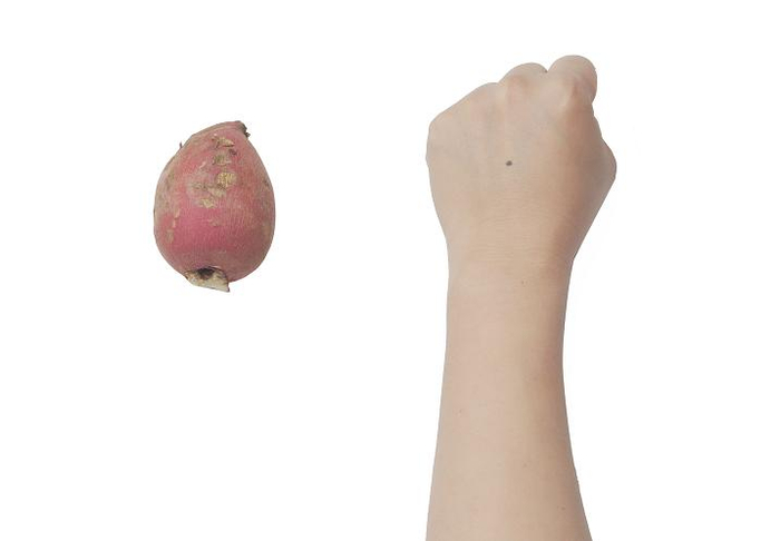 (一拳头大小的红薯大约是50~100克。来源:自己拍的)