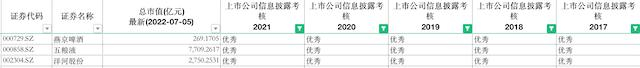 与之相对应的,则是涪陵榨菜(002507)(SZ.002507)的退步。2021年其评价结果由此前连续4年的优秀变为良好。在其未“满足”深交所考评不得A的情形的背景下,可能是由于考核标准修订后,其在中小投资者的维护上做的不到位的缘故。
