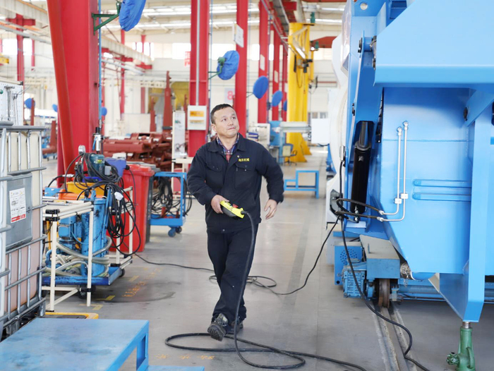 海沃机械工程师正在检测产品
