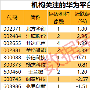多只华为平台概念股获机构关注