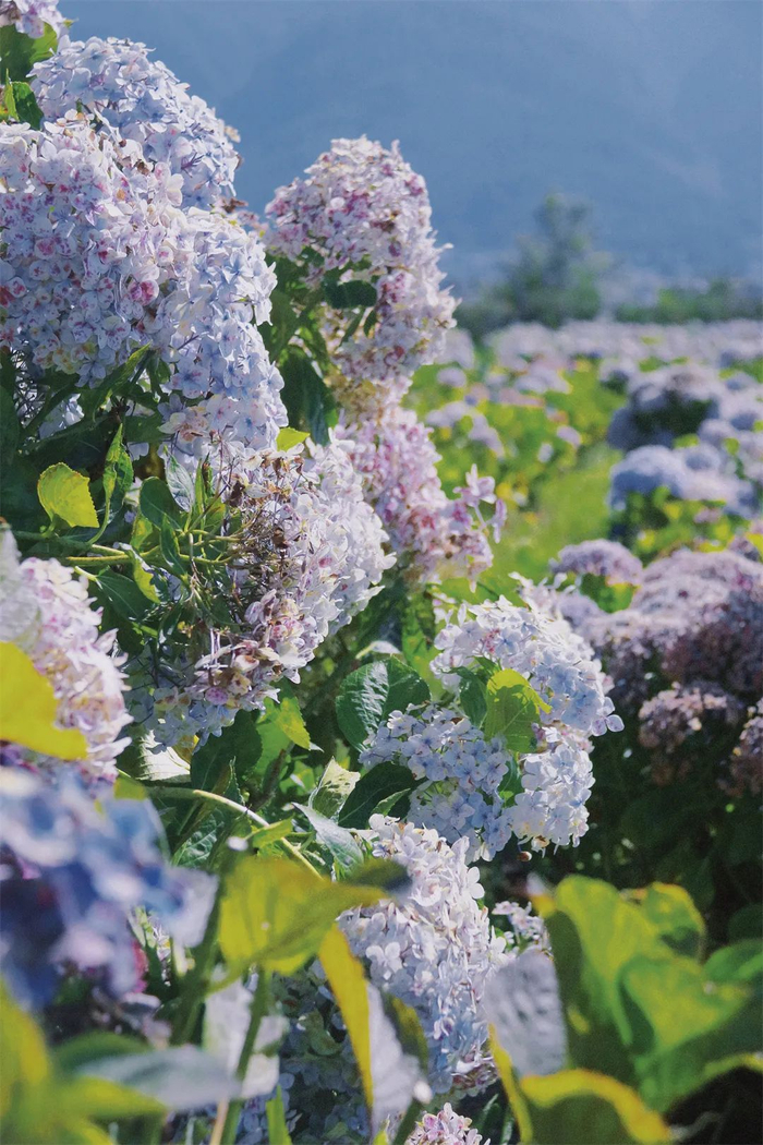 随后,云游队伍走进位于大理才村附近的水花庄园,这是当地时下最火的网红农场之一,在这里,网红大V走进庄园中的绣球花海,此时大片大片的绣球花开得正盛,蓝的、紫的、白的,或纯美、或浓烈,团团簇簇的绣球花缀满枝头,美得恰到好处。翠绿的草地上洁白的羊驼或在草地上悠闲吃草,或热情迎接远道而来的客人,湖面上皮划艇扬帆起航,水花四溅,为炎炎夏日增添一丝凉爽。