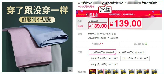 像这种冰丝内裤,网上起码要卖到四十多块钱一条。