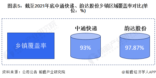 从乡镇覆盖率来看,韵达股份更胜一筹。2021年,韵达股份在乡镇农村地区的服务范围得到了极大拓展,截至2021年底,乡镇覆盖率达到了97.87%;中通快递乡镇覆盖率为93%。