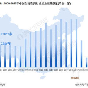根据中国企业数据库企查猫,目前中国生物医药行业的主要企业共有27057家,其中以2016年为主要注册热潮,2016年注册企业数量高达1881家。