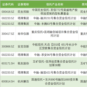 与安克创新、税友股份不同的是,塔牌集团(002233.SZ)“踩雷”多只中融信托产品,单只产品最高购买金额仅有2000万元。