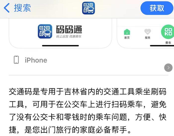 记者了解到,“码码通APP”由吉林省通卡支付股份有限公司开发,是吉林省内乘坐公交车的专用刷码工具。目前,其业务范围还涵盖吉林市、延吉市。