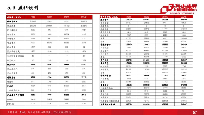 盈利预测:预计公司2022-2024年营业收入分别为3446亿元、4485亿元和5343亿元;归母净利润分别为69亿元、115亿元和156亿元,对应EPS分别为2.36元、3.95元和5.36元。给予公司“推荐”评级。