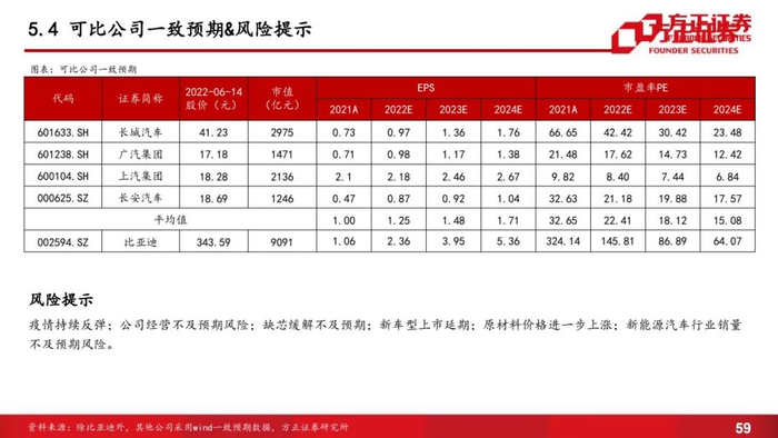风险提示:疫情持续反弹;缺芯缓解不及预期;新车型上市延期;原材料价格进一步上涨;新能源汽车行业销量不及预期风险;公司经营不及预期风险。