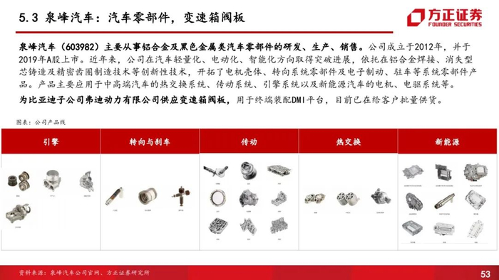 车身及内外饰领域建议关注 广东鸿图、华阳集团、泉峰汽车