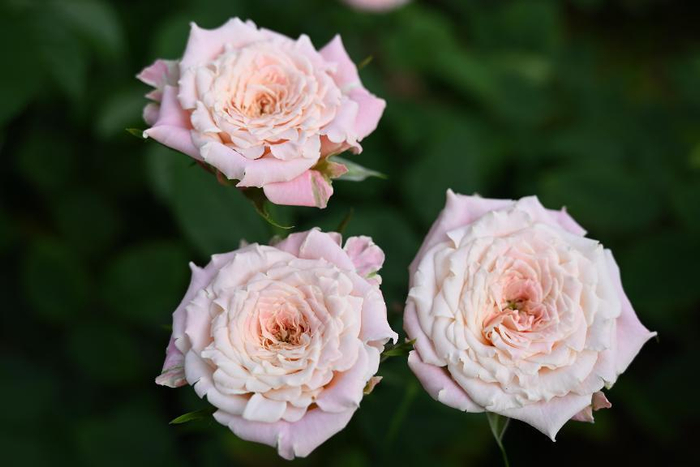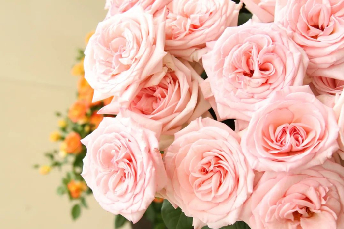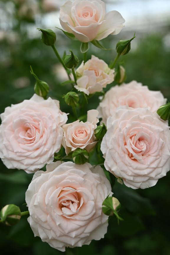 ‘含香’是锦科自主研发的单头品种,温柔的粉白色,奥斯汀花型,莲座状,大花型,产量180-220枝/㎡/ 年,瓶插期7-12天。