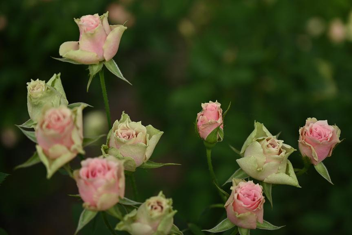 ‘樱花谷’颜色自带复古怀旧色,绿色外瓣包裹着粉色的“少女心”,需要开放以后才能看到。它的花型非常独特,单支花头多,花头松散随意,错落有致,只需几支就能插一瓶,别有一番诗意,作为配花有更大的容纳性和更高的融合度。