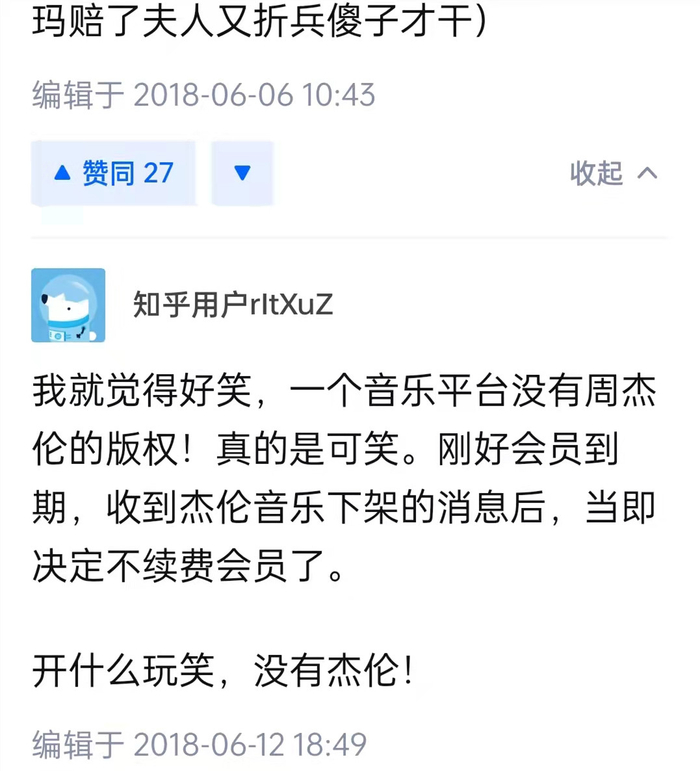 这不由让人想起当年有网友对网易云音乐的评价:一个音乐平台没有周杰伦的版权,真的是可笑。