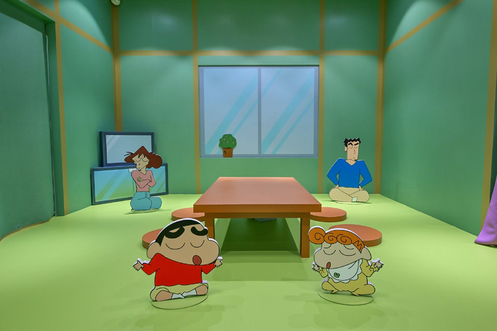 离开神秘怪诞的“奥特曼”主题区,映入眼帘的是色彩跳跃、氛围轻松活泼的“蜡笔小新”主题区。该展区还原蜡笔小新的家,用真实的场景和人物给大众带来沉浸式体验。