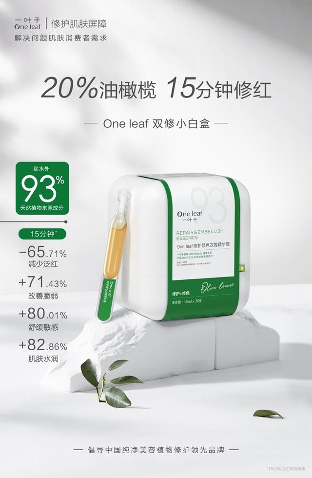 一叶子是上美集团旗下最年轻的品牌之一,也是上美布局年轻市场的重要品牌之一。近日,一叶子不断迎合新世代的需求,领航国货美妆进阶,开启蓄力已久的品牌转型,提出全新口号“一叶子,修护肌肤屏障”,并敏锐地捕捉到行业风向,推出全新产品One leaf修护修色次抛精华(下文简称“双修小白盒”)为年轻市场发展赋能。