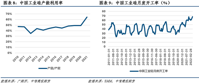 我们以产量/产能来描述产能利用率情况,可以发现2021年之前,中国工业硅产能利用率普遍低于50%,这一方面是因为僵尸产能和落后产能的存在,部分技术较差的企业生产持续性难有保障,另一方面是因为主产区云南与四川依赖水电,部分产能只能在水电充沛的6-11月生产。