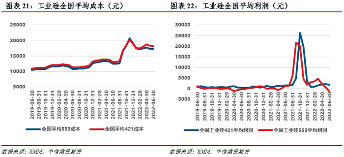 此外,6月上旬时我们实地调研了四川的几家工业硅厂商。从调研反馈情况来看,工业硅厂商产能利用率并不高,表现为普遍存在闲置产炉、丰水期已至的情况下却并未打算全力生产,在一定程度上暴露了行业内产能过剩的现状。并且随着电力成本、原材料成本和运输成本的上涨,企业利润也被进一步压缩。由此看来目前厂商仍然承受一定压力。