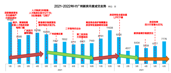 但大家别忘了一个前提。疫情之后,2020年下半年至2021年上半年之间,全球央行大“放水”,不少资金流到了核心城市的楼市里。再加上那一段时间内,像黄埔、南沙等热门区域的人才限购被”撕破”了,广州的新房成交量自然大幅上涨。