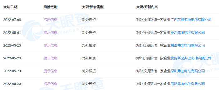 弗迪电池在2022年成立的部分子公司