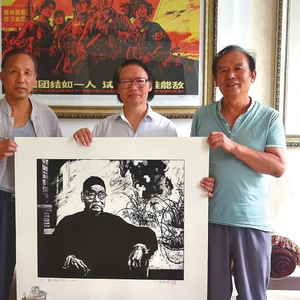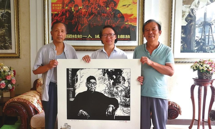 著名版画家袁庆禄为曲周博物馆捐赠画作。(右一为李治山)