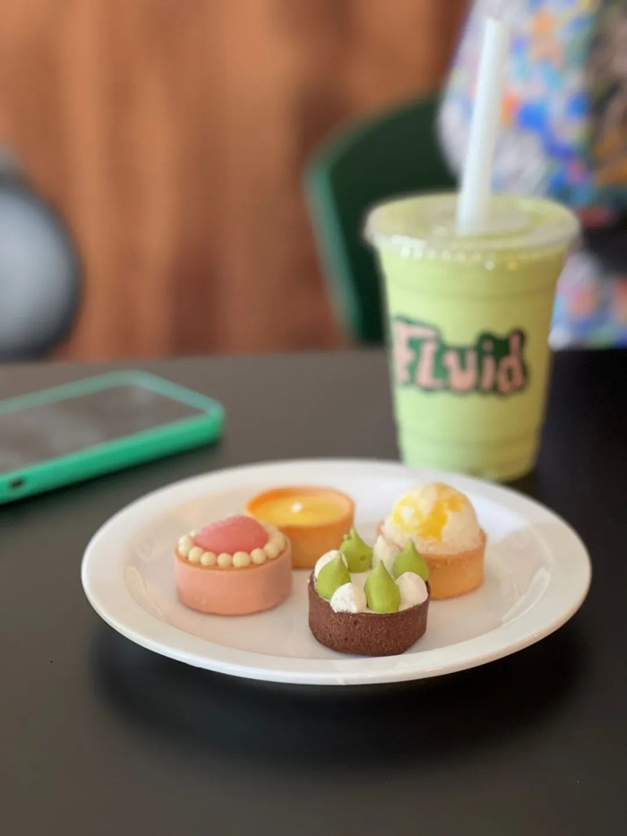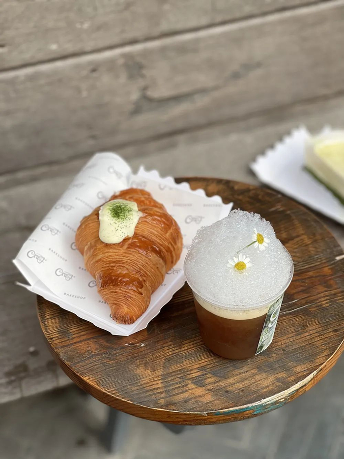 搬到新店后店面大了不少,撞色的门头和店内的陈设带点复古,又清新治愈,一秒就能吸引你的注意。名叫“一根葱”的斑斓dirty很独特,“大力水手奶昔”很有夏天的感觉。